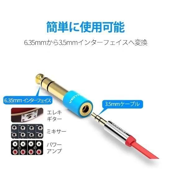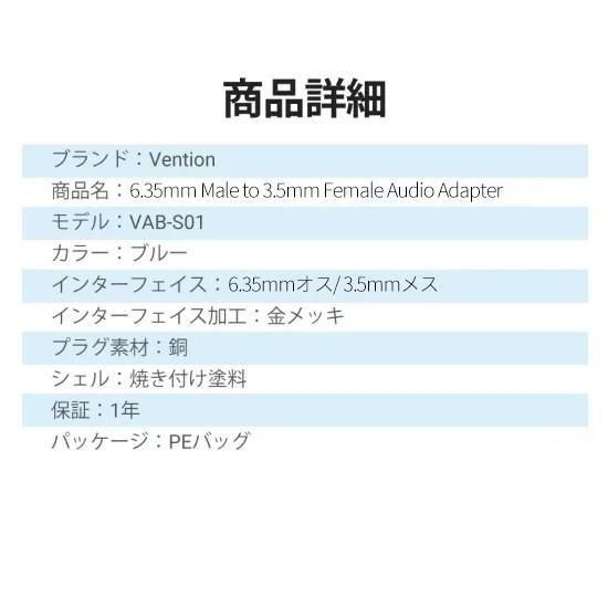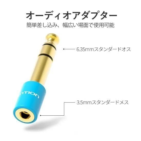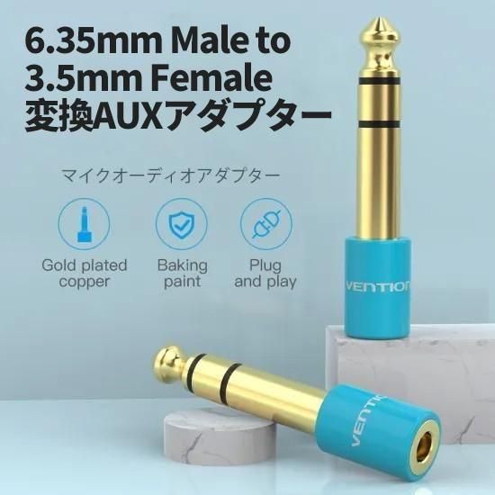 【商品詳細】 ブランド:Vention 商品名:6.35mm Male to 3.5mm Female Audio Adapter モデル:VAB-S01 カラー:ブルー インターフェイス: 6.35mmオス/3.5mmメス インターフェイス加工:金メッキ プラグ素材:銅 シェル:焼き付け塗料 保証:1年 パッケージ:PEバッグ