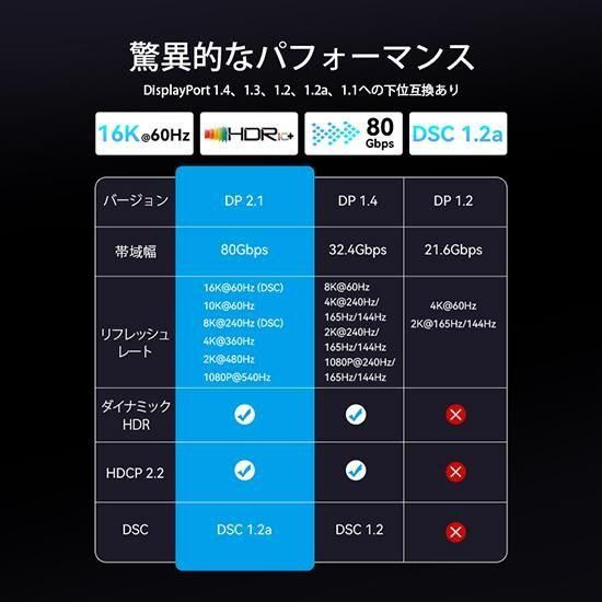 解像度:16K@60Hz/8K@240Hz(下位互換性あり)